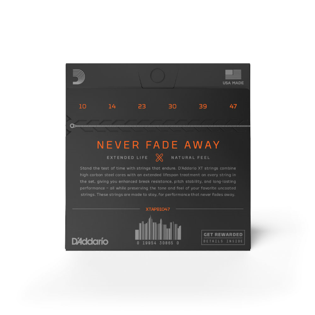 Die D’Addario XT Saiten bestehen aus einem Stahlkern mit hohem Kohlenstoffanteil, der für eine längere Lebensdauer behandelt wurde. Du profitierst dadurch von erhöhter Reißfestigkeit, Stimmstabilität und lang andauernder Performance – mit dem gleichen Spielgefühl wie bei unbeschichteten Saiten. Diese Saiten halten, was sie versprechen: lang anhaltende, gleich bleibende Performance.