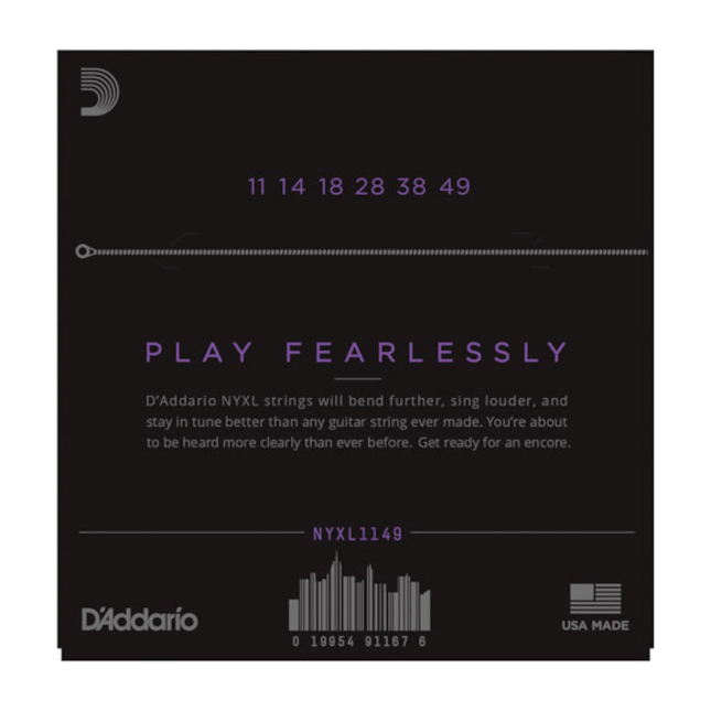 - Die NYXL-Saiten bestehen aus der exklusiven in New York hergestellten D'Addario Stahllegierung mit hohem Kohlenstoffanteil, die eine bisher unerreichte Festigkeit bietet – Spiel ohne Angst