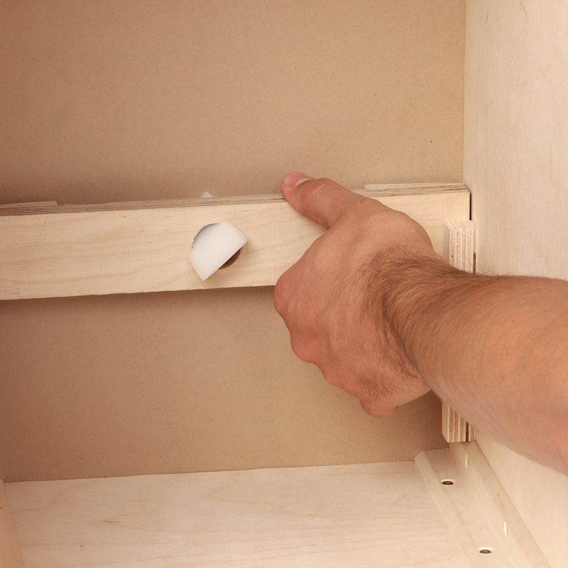 Mit dem kleinen Stück Schaumstoff, das in das Loch der Snare-Traverse gesteckt wird, kann der Snare-Effekt im Klang verändert werden. Zieht man den Schaumstoff heraus, wird der Snare-Effekt lauter. Drückt man den Schaumstoff hinein, wird der Snare-Effekt gedämpft und leiser.