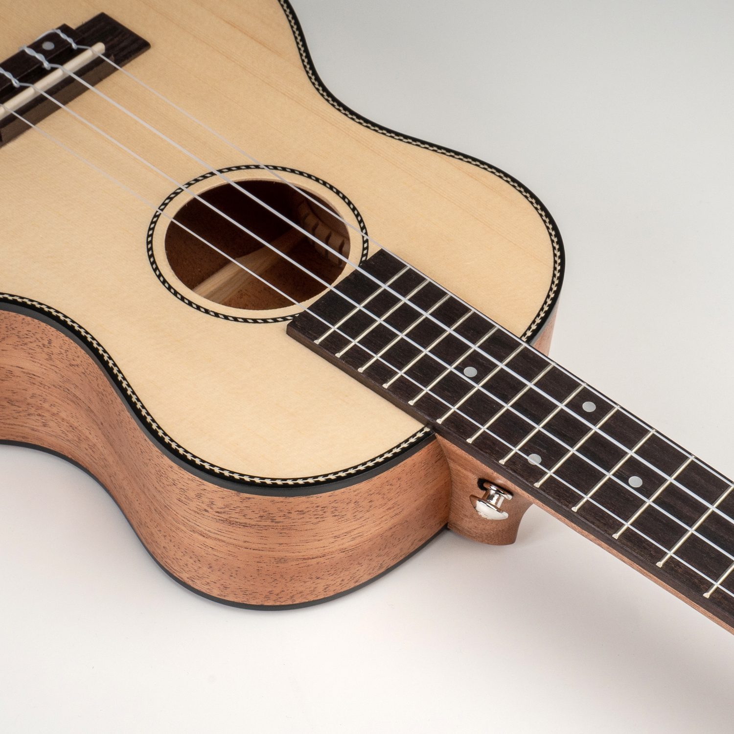 Die Solid Top Ukulele überzeugt sofort von Anfang an durch die sehr gute Verarbeitung. Die Decke besteht aus massivem Fichtenholz. Die schöne und gleichmäßige Maserung ist dabei nicht nur ein optisches Highlight. Als Deckenholz für Ukulelen und akustische Gitarren, sorgt Fichte für einen vollen Klang und ein kraftvolles Feedback. Da es etwas weicher ist, überträgt es Schwingungen leichter. Das edle Matt-Finish wurde speziell gewählt, um den Klang nicht zu beeinträchtigen.