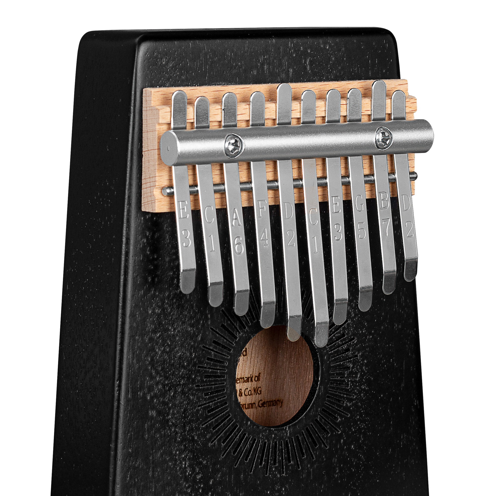 Die Sela Kalimba 10 in Schwarz ist aus hochwertigem Mahagoni-Holz gefertigt. Der Korpus verstärkt die tiefen Frequenzen und erzeugt dadurch einen vollen, klaren und warmen Klang mit einer faszinierenden Resonanz. Die hochwertigen Metall-Zungen sind in C-Dur gestimmt und haben einen Tonumfang von c' - e'' (C4 - E5). Durch die eingestanzten Noten auf den Klangzungen ist die Kalimba sowohl für Anfänger als auch für fortgeschrittene Spieler geeignet. Sie kann als Soloinstrument und auch als Begleitung für Sänger, Musiker und Tänzer gespielt werden. Die Sela Kalimba ist sehr leicht und kann schnell und einfach in der mitgelieferten Tasche verstaut und transportiert werden. Die Kalimba enthält eine gepolsterte Tragetasche mit Schlaufe, eine zusätzliche Stofftasche und einen Stimmhammer. So macht das Spielen von Anfang an Spaß!