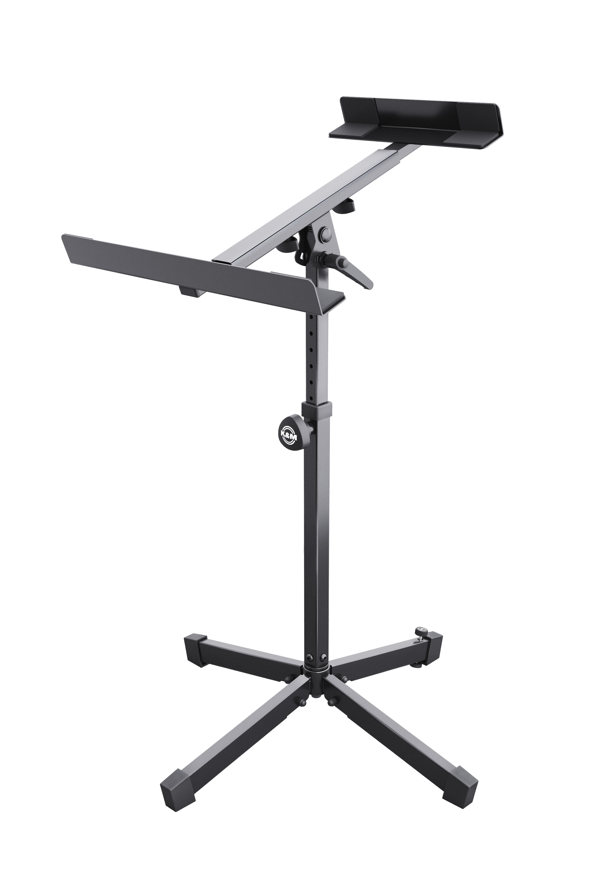 Extrem stabiler und robuster Hackbrettständer. Die Höhe der Stahlrohrkonstruktion kann von 700 bis 1050 mm eingestellt werden. Für einen wackelfreien Stand ist die klappbare Vierfuß-Fußkonstruktion mit einer Bodenausgleichsschraube ausgestattet. Die klemmbare Instrumentenhalterung bietet Platz für Geräte mit einer Tiefe von 455 bis 665 mm und ist für eine optimale Spielposition bis 45° stufenlos neigbar. Breite Filzstreifen schützen das Instrument vor Beschädigungen. Für den Transport lässt sich der Ständer einfach und leicht zusammenklappen. Eine Notenablage 11515 ist optional erhältlich.